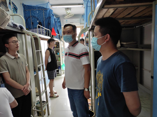 活动中,学院党总支副书记刘峰和19级辅导员带领学生干部前往学生宿舍,检查了宿舍安全卫生状况。在检查过程中,刘峰仔细询问了近期生活、学习情况,强调在防疫期间,一定要做好宿舍内务整理,保证宿舍安全干净整洁,维持良好宿舍环境,做好个人卫生防护,勤开窗通风,定期消毒;叮嘱同学们出门戴好口罩,勤洗手等做好个人防护,按要求做好晨午晚检。提醒同学们有困难要及时与班主任和辅导员联系交流,共同努力把疫情对生活和学习的影响降到最低。检查中,刘峰一行还对个别宿舍卫生条件有待改进的情况现场提出了整改要求,嘱咐同学们,一定要遵守学校管理相关规定,在做好疫情防控的同时要重视消防用电安全,确保宿舍安全。