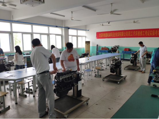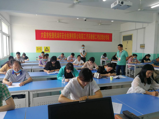 本网讯(汽车技术学院 叶兴姚)6月6日,汽车技术学院顺利完成2020年第一期汽车维修工(初级)社会培训与鉴定工作。参加鉴定考证的学员共有29名,均为六安市快捷实业集团机动车安全检测有限公司员工。