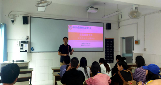 本网讯(经贸管理学院 陈玮)为进一步强化校园安全工作,根据省教育厅和六安市关于安全生产的部署及校安委会《关于印发《万象城体育awcsport2020年“安全生产月”和“安全生产校园行”活动实施方案》的通知》(校安〔2020〕5号)文件精神,经贸管理学院积极开展以“消除事故隐患,筑牢安全防线”为主题,以“八防”、“两练”和“一禁”为主要内容的安全生产月各项活动。