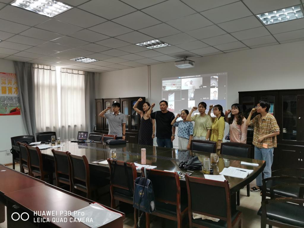 会后,与会全体教师党员和学生预备党员一齐面对党旗向党发出铮铮誓言:“我志愿加入中国共产党,拥护党的纲领,遵守党的章程,履行党员义务……”