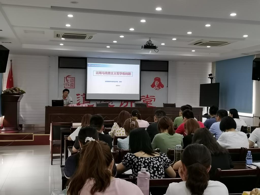 2020年8月1日上午,袁旗老师应六安市税务局金安分局邀请,为金安区税务局税校的青年税务干部作了题为“运用马克思主义哲学看待问题”的专场报告。报告会由该局副局长孙选同志主持。
