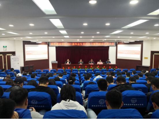 本网讯(城市建设学院 袁野)2020年11月6日晚,城市建设学院在图书馆报告厅举行2021届毕业生顶岗实习暨预就业动员大会。城市建设学院院长张显国、党总支副书记叶启衡、副院长王红林、办公室主任黄波、团总支书记张凤以及各毕业班班主任以及全体21届毕业生出席了本次大会,会议由城市建设学院副院长王红林主持。