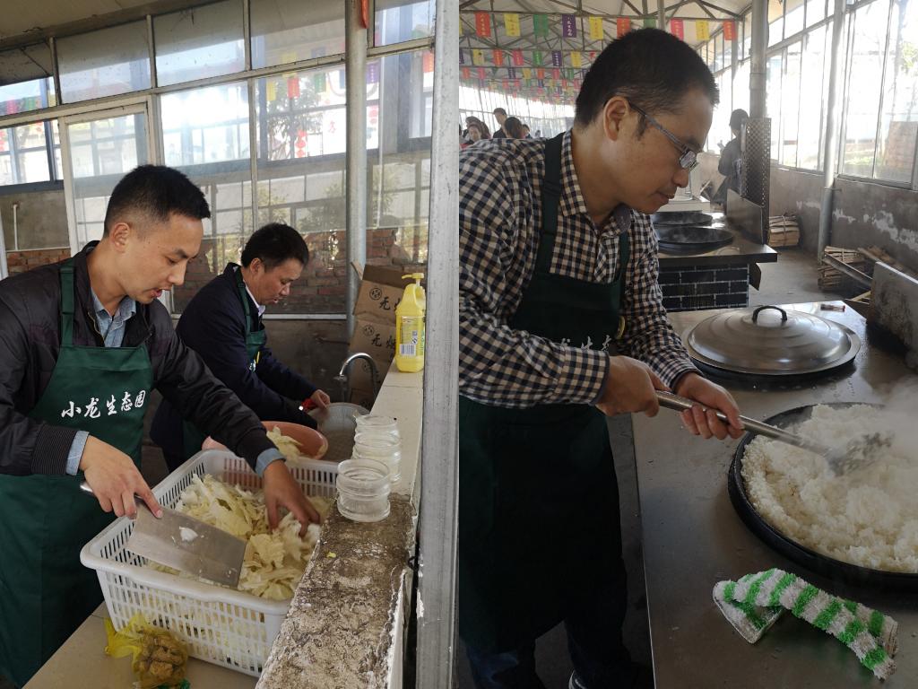 拓展活动结束后,老师们亲自动手做起了大锅饭,摘菜、洗菜、切菜、烧火、掌勺、刷碗……大家分工明确,各显神通,老师们一改往日讲台上的严肃,围上围裙,忙得不亦乐乎。一道道美味的菜肴端上了饭桌,老师们享受着自己的劳动成果,谈笑风生,甚是愉快。