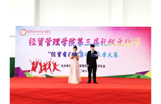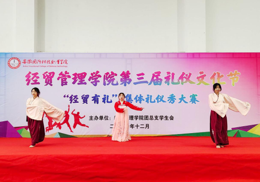 本网讯(经贸管理学院 付玉梅)为深入开展经贸管理学院“一院一品”活动,提升学院学生的礼仪素养,展示新时代大学生良好风貌,经贸管理学院于12月9日在校体育馆一楼举办第三届礼仪文化节集体礼仪秀大赛。院党总支副书记刘峰、副院长杨学分、团总支书记付玉梅、交通运输学院校区主任刘子君、辅导员陈玮、李文君、许凤麟以及职业化素养老师陈晓艺、姜露露、郭运杨应邀担任本次活动评委,来自全院学生代表共200人参加现场观赛。