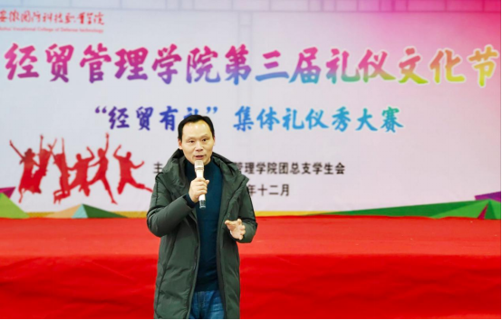 赛后,院党总支副书记刘峰对此次大赛进行了点评,他指出,经贸管理学院向来注重一院一品活动建设,已连续三年开展礼仪文化节系列活动;他充分肯定了参赛队伍的精彩表现,并强调在学院教育教学中文明礼仪的重要性;他强调团学活动要以立德树人为根本,培养学生良好的日常行为习惯和道德情操,将专业技能与第二课堂活动有效融合,同时也指出了一些活动存在的不足之处。
