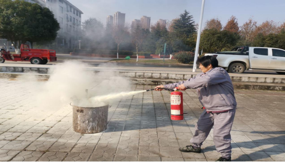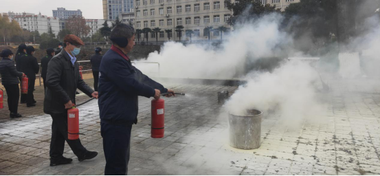 实操演练前,由学院安全消防员姚德文对后勤员工普及消防安全知识,通过几则典型案例述说了火灾的危害和防范知识的重要性,详细分析了校园火灾产生的原因,同时普及了消防安全技能以及国家对消防安全突出风险的整治要求和检查消除火灾隐患、组织扑救初起火灾、组织人员疏散逃生和消防宣传教育培训的能力。消防安全员还现场为大家讲解了防火意识、灭火技能和逃生自救等消防内容并现场演示灭火器的正确使用方法。演示结束后现场模拟了火灾环境,大家按照原有的方阵依照顺序逐一进行了消防实操演练。