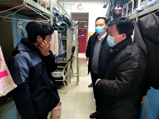 来到学生宿舍,学院领导向返校的同学们表示了新学期的问候,详细询问了学生的返校情况,了解学生返校后的思想状况。一方面,希望同学们积极调整心态将重心转移到在校的学习生活上来,同时要注意疫情防控和春季传染病预防工作,全力搞好宿舍环境卫生,定期消毒,多开窗通风,保持宿舍空气流通;同时对学生进行了期初安全教育,提醒学生们务必要遵守学校的规章制度,严禁存放、使用违禁物品和用电设备,杜绝安全隐患,同时更要注意防火防盗,提高安全意识。