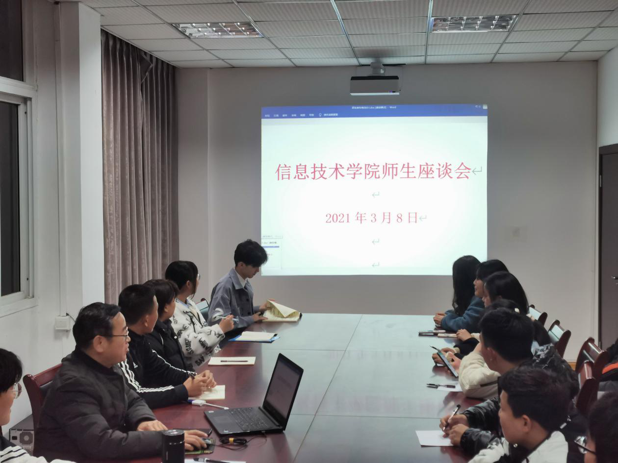 本网讯(信息技术学院 孙颖凯)新学期伊始,为了全面了解同学们返校后学习生活情况,进一步提高服务师生的意识与能力,信息技术学院于3月8日晚7点在知行楼304会议室开展新学期师生座谈会。信息技术学院党总支书记孙武参加了本次座谈会并与同学们展开了深入的交流。