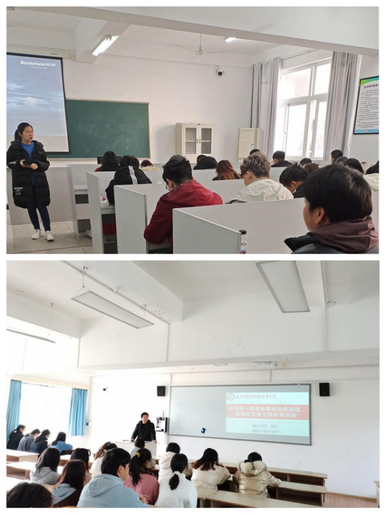 此次“开学第一课”主题教育以“珍爱生命健康,共建平安校园”为主题,内容涵盖“防疫知识普及”“健康习惯培养”“传染病防控宣传”“反电信诈骗”四个方面。在主题班会中,辅导员、班主任结合阶段性疫情防控的新要求、新特点,开展防疫知识和防控技能培训,普及返校后心理调适与应对知识,让学生进一步了解疫情防控相关知识和校园常态化疫情防控“两案八制”工作要求,提高学生的防控意识和防护能力,更以落实疫情防控要求为契机,引导学生养成健康的卫生和生活习惯。对春季易发传染病防控知识进行教育宣传,向学生普及肺结核、诺如病毒感染性腹泻、水痘、流行性感冒、风疹、流行性腮腺炎等传染病的预防措施、防控要求。最后结合真实案例以案说法,就防范电信诈骗进行宣传教育。