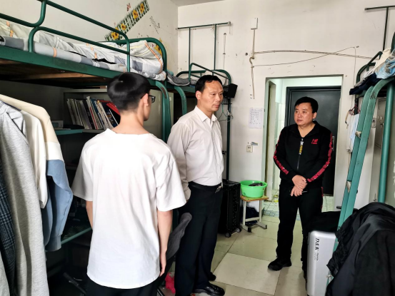 在1号、5号和9号公寓,检查组重点检查了学生宿舍是否有违规用电现象、是否存放违禁物品、使用设备是否有安全隐患、宿舍环境卫生环境是否达标、常规疫情防控和防火防盗等情况。经过检查发现,大部分学生宿舍安全和卫生情况良好,学生都具有较强安全防范意识和良好生活卫生习惯,能做到严格遵守学校宿舍管理制度的相关规定。但也存在个别宿舍卫生状况较差或用电存在安全隐患的情况。经现场教育和讲解后,同学们都立即动手整改,并允诺会进一步加强安全和卫生意识,自觉遵守学校规章制度,严防火灾和人身意外伤害事故的发生,也会继续做好新冠疫情和常见春季传染病防控工作,强化自我管理、自我教育、自我服务的能力。