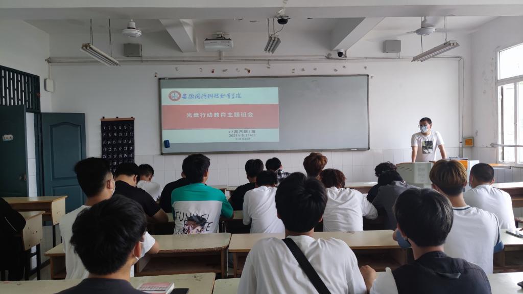 本网讯(汽车技术学院 朱其阳)为深入学习贯彻习近平总书记关于“厉行勤俭节约,反对餐饮浪费”重要指示精神,进一步教育引导学生树立文明健康生活方式,厉行勤俭节约,反对铺张浪费,积极弘扬中华民族传统美德,践行社会主义核心价值观,根据学校《关于进一步开展光盘行动活动的通知》(校学函〔2021〕25 号)文件精神,5月份,汽车技术学院组织各班级开展了“光盘行动,你我同行”专题宣传教育。