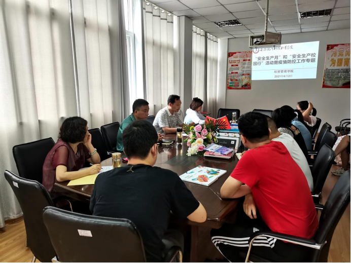 本网讯 为进一步贯彻落实学校关于学生安全稳定和疫情防控工作的决策部署,做好疫情防控期间学生安全管理工作,6月2日下午,经贸管理学院组织召开“安全生产月”和“安全生产校园行”暨疫情防控工作班主任专题会议。经贸管理学院党总支书记杜先扬、学院党总支副书记刘峰、各年级辅导员及在校班级班主任参加会议。会议由党总支副书记刘峰主持。