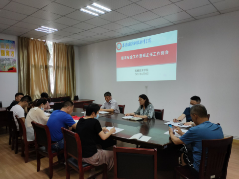 本网讯(机械技术学院 张艳华) 临近期末,适逢端午节假期,为全方位做好端午节放假前后及期末各项安全工作,促进各项班级工作平稳开展,6月9日下午,机械技术学院召开了期末安全工作暨班主任工作例会,会议由院党总支副书记陈思主持,院党总支书记张宗江、辅导员和全体班主任参加了会议。