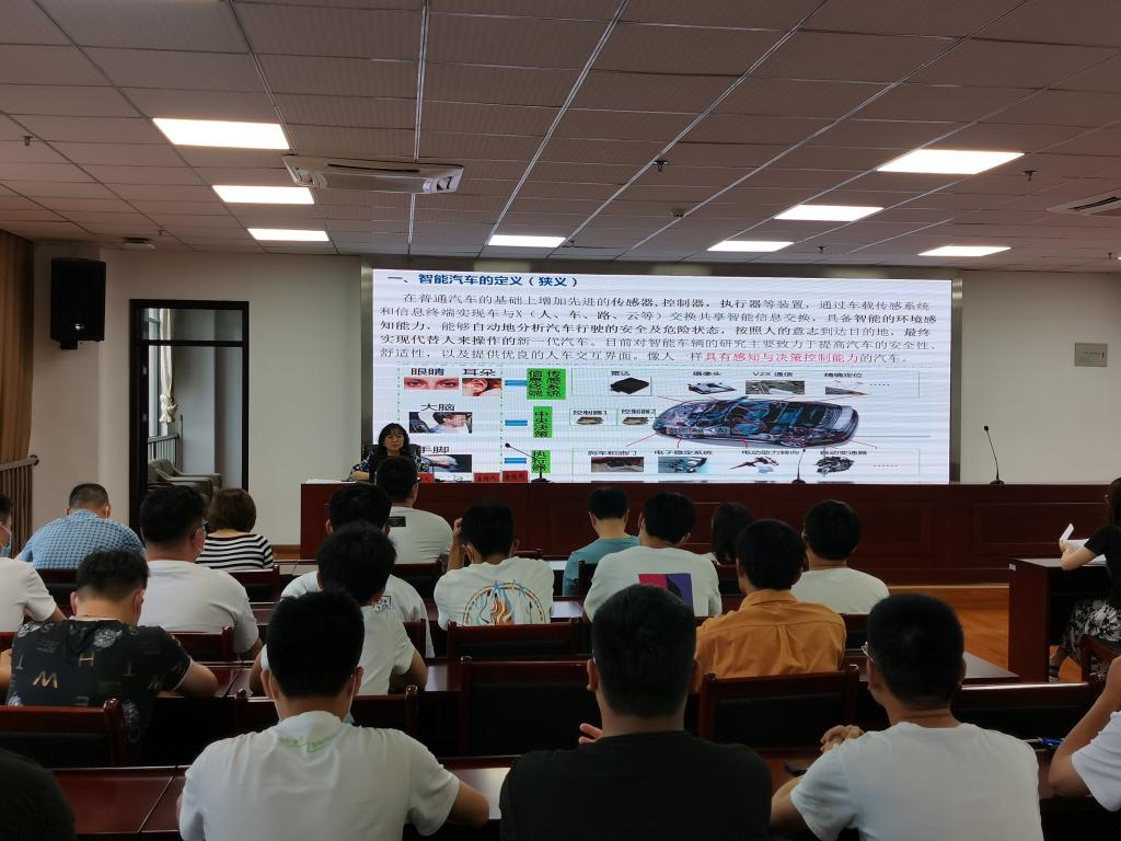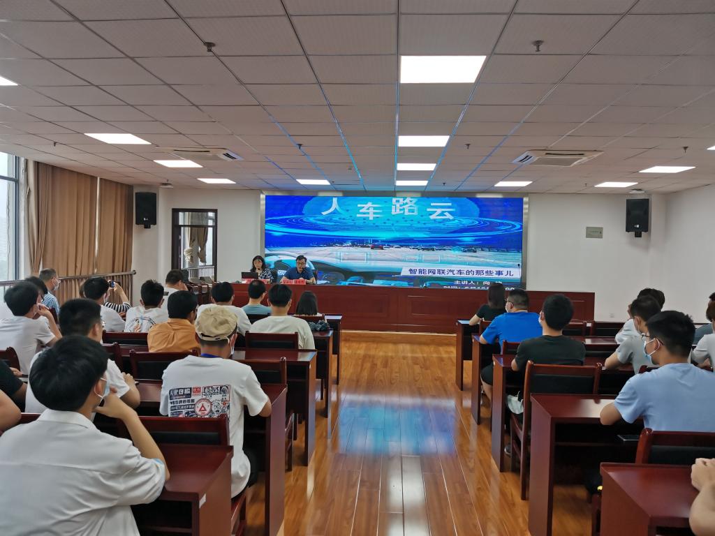 本网讯(汽车技术学院 朱其阳)为了进一步增强学生对智能网联汽车发展现状的认知,激发学生的学习积极性,6月16日下午16:00,汽车技术学院在秉心楼12楼会议室举办了“人、车、路、云——智能网联汽车那些事儿”专题讲座。本次讲座由学院党总支副书记余桂刚主持,邀请汽车技术学院副教授向楠老师担任主讲,学院专业课程教师及2019级、2020级各专业100多名学生现场参加了讲座。
