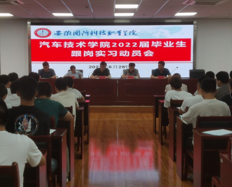 本网讯(汽车技术学院 黄世超)为进一步做好毕业生跟岗实习工作,引导学生做好跟岗实习前的各项准备,推进实习工作的顺利开展,2021年6月28日晚,汽车技术学院在秉心楼12楼会议室隆重举行2022届毕业生跟岗实习动员大会。汽车技术学院党总支副书记余桂刚老师、汽车技术学院副院长姜继文、全体辅导员和班主任参加了本次会议。