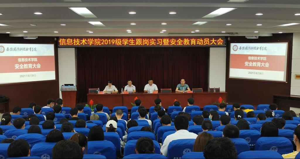 6月9日下午2:30,信息技术学院在图书馆报告厅召开了2019级学生跟岗实习暨安全教育动员大会。校党委委员,信息技术学院院长黄存东、信息技术学院党总支书记孙武、信息技术学院党总支副书记杨庆颖均在会上发言。会上,学院领导就跟岗实习、顶岗实习政策做了详细解读,并对同学们提出了几点希望和要求,同时也鼓励同学们要在实习过程中掌握知识技能、不断学习、努力创造、大胆实践,确保圆满完成跟岗实习和顶岗实习任务并顺利就业,为信息学院争光,为国防学院添彩。