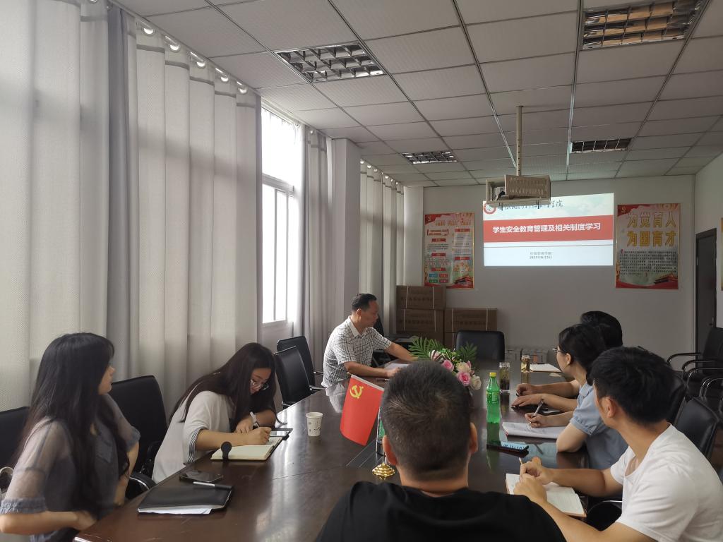 9月3日,党总支副书记刘峰作题为《学生安全教育管理及相关制度学习》的专题报告,他结合高校大学生安全工作案例、《学生伤害事故处理办法》《万象城体育awcsport安全教育及管理办法》《安徽国防科技职业需要学生处分办法》等制度,从充分认识大学生安全教育的重要意义、大学生安全教育的主要内容及突发意外处置的体会三个方面分析了大学生安全教育管理的现状及面临的问题,对如何有效开展大学生安全教育及预防危机事件发生进行了针对性指导。