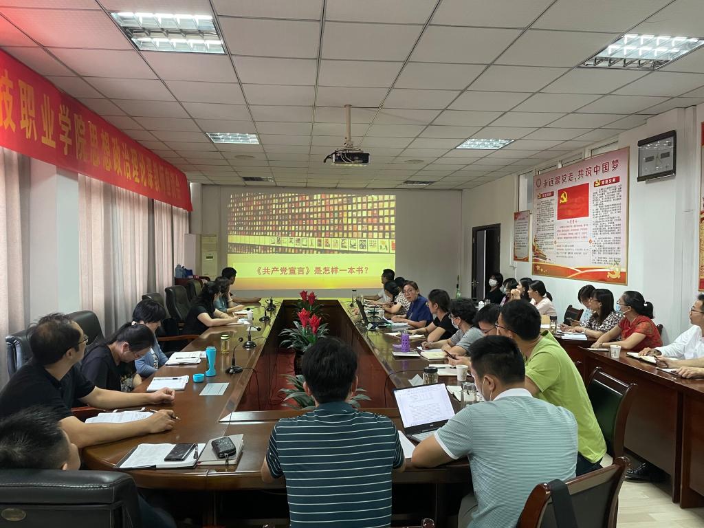 本网讯 为提升思政部教师理论水平,推进党史学习教育,打造“质量思政、书香思政、温馨思政”,9月9日下午,思政部在知行楼403会议室举办了“书香思政”阅读经典学术报告会,特邀请安徽省直机关工委党校魏群副教授作了题为“《共产党宣言》导读”的报告。报告会由思政部副主任(主持工作)陈思主持,思政部全体专兼职教师40余人参加了报告会。