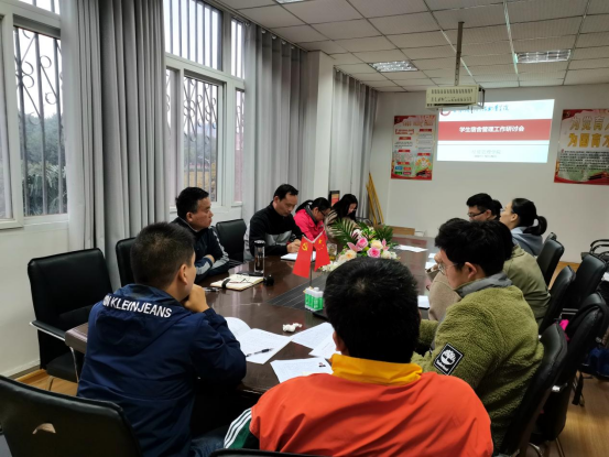 本网讯(经贸管理学院 陈玮)为进一步明确学院在今后宿舍管理工作中的新任务、新要求,10月20日下午,经贸管理学院在知行楼204会议室组织召开学生宿舍管理工作专题研讨会,会议由学院党总支副书记刘峰主持,党总支书记杜先扬和全体辅导员、班主任参加会议。