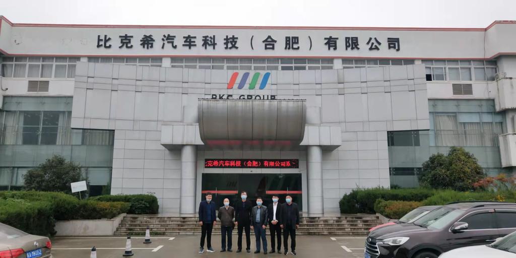 在芜湖奇瑞股份有限公司,老师们与在该企业顶岗实习的6名学生代表进行了座谈交流,详细了解他们在企业的学习、工作和生活情况。余桂刚副书记要求顶岗实习的同学一定要注意安全,鼓励他们设定目标后要坚持不懈去实现,争取在实习岗位中学到更多技术,完成学生到员工身份的转变,同时,也就学生在顶岗实习中遇到的问题与企业进行了沟通,以确保学生能高质量完成跟岗实习工作,用人企业表示我们的学生在企业中均能服从管理,专业技能过关,综合能力也得到了很大的提高。在比克希汽车科技(合肥)有限公司,老师们在企业负责人带领下参观了企业生产车间,详细了解了企业发展状况、用人需求、薪资福利、未来发展规划,从而为校企合作深入开展奠定了坚实基础。