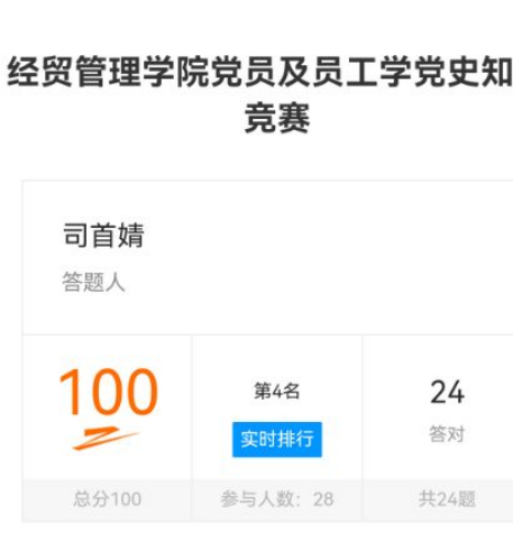 此次竞赛采用线上答题的方式,涵盖党史、新中国史、改革开放史、社会主义发展史等方面内容。全体党员踊跃参与,均取得了优异的成绩。