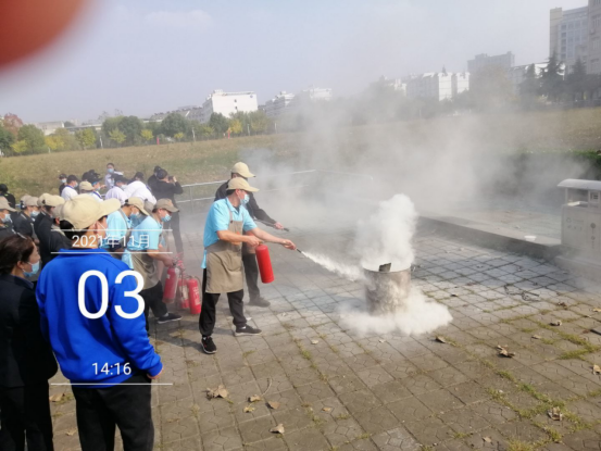 实操演练前,由学院安全消防员姚德文对后勤员工普及消防安全知识,通过几则典型案例述说了火灾的危害和防范知识的重要性,详细分析了校园火灾产生的原因,同时普及了我们需要掌握的消防安全技能以及国家对消防安全突出风险的整治要求和检查消除火灾隐患、组织扑救初起火灾、组织人员疏散逃生和消防宣传教育培训的能力。普及完消防知识后消防安全员还现场为大家讲解了防火意识、灭火技能和逃生自救等消防内容并现场演示灭火器的正确使用方法。演示结束后现场模拟了火灾环境,大家按照原有的方阵依照顺序逐一进行了消防实操演练。