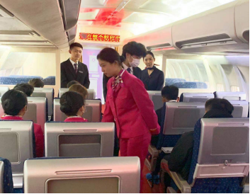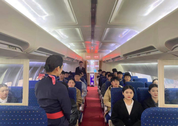 活动由合作企业中航国铁教研中心代坤、刘纹两位民航专业教师带领学生开展。活动中,教师对飞机客舱释压的影响、客舱供养设备、乘务员对客舱释压的直接处置作了详细的介绍和演示。情景模拟环节是本次活动的重点,学生分别扮演乘务员和旅客的角色,模拟“当飞机突然出现客舱施压时,乘务员该如何紧急处置并安抚旅客情绪”的情景。