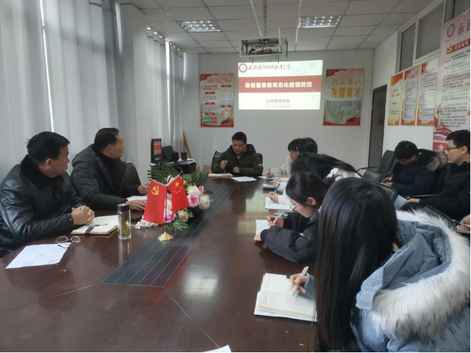本网讯(经贸管理学院 许凤麟)为强化期末常态化疫情防控工作,进一步做好寒假学生工作,12月28日下午,经贸管理学院召开了期末学生及寒假疫情防控工作会,党总支书记杜先扬及全体学工人员参会,会议由副书记刘峰主持。