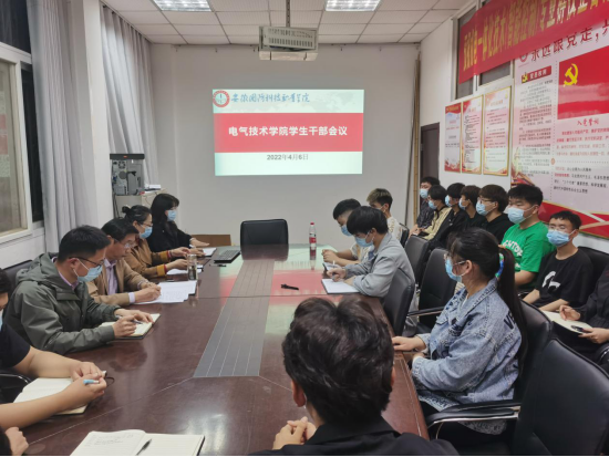 本网讯(电气技术学院 陈俊)疫情就是命令,防控就是责任。为切实做好疫情防控工作,发挥学生干部模范带头作用。4月6日晚、4月7日晚,电气技术学院分别组织团总支学生会主要干部、各班级主要学生干部召开学生干部工作会议。电气技术学院党总支书记叶启衡、副书记张丽、团总支书记陈俊、辅导员樊新丽参加会议,会议由张丽主持。