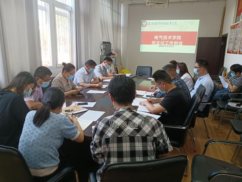 本网讯 为进一步落实学校疫情防控部署和要求,进一步筑牢疫情防控线,维护师生生命健康和校园安全稳定,5月6日下午,电气技术学院在知行楼102会议室召开常态化疫情防控专题班主任工作会议。学院党总支书记叶启衡、副书记张丽、团总支书记陈俊、20、21级全体班主任参加了会议,会议由张丽主持。