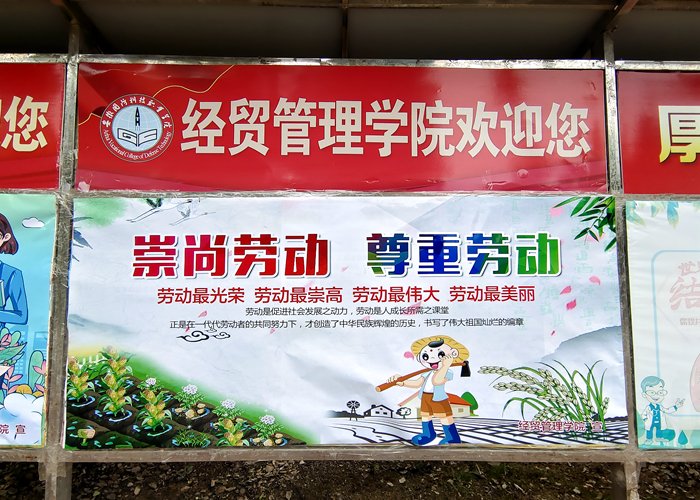 营造劳动光荣浓厚氛围。学院利用微信、QQ群和宣传栏等载体,充分发挥宣传阵地作用,加强劳动教育宣传,强化劳动观念,弘扬劳动精神。