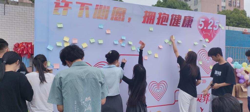 本网讯(城市建设学院 康垚)为迎接即将到来的“5.25”心理健康日,推动万象城官网心理健康教育工作的开展,丰富第十七届大学生心理健康节活动内容,创新活动形式,帮助学生了解和学会应对压力,促进学生健康成长。5月18日下午,在学校田径运动场,城市建设学院举办了“许下心愿 拥抱健康”——大学生心理素质拓展活动。参加活动的有城市建设学院党总支副书记叶高洁,团总支书记袁野,辅导员康垚、王俊及团总支学生会女生部和各班级学生。