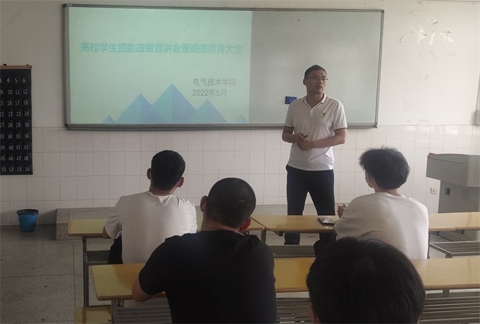 本网讯(电气技术学院 纪远)为推动资助诚信教育活动深入开展,进一步培养大学生树立诚信观念、增强法律意识,全面构建资助育人质量提升体系,营造诚实守信的校园文化氛围,展现电气学院学子诚信朴实的精神风貌。5月25日下午,电气技术学院在2教108教室开展了以“诚信为人,诚信求知,诚信贷款”为主题的资助诚信教育专题讲座暨签名活动。