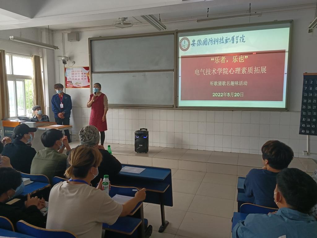 聆听心声,拥抱快乐。音乐可以融化学生的心灵,学院开展猜歌名趣味接龙活动。一曲曲柔美的旋律,一首首活泼的音符,穿插一段段感人的正能量小故事,不仅让现场的同学缓解了压力,更拥抱了快乐与感动。活动中,院党总支副书记张丽科普了大学生心理健康知识,给大家分享了如何利用音乐为自己减压放松。
