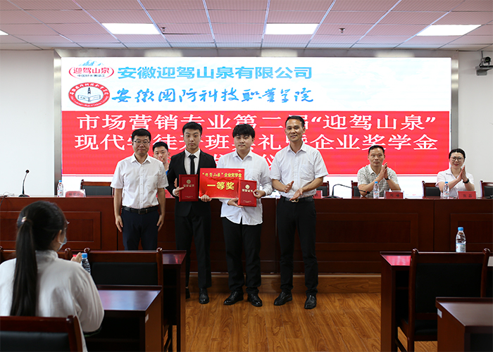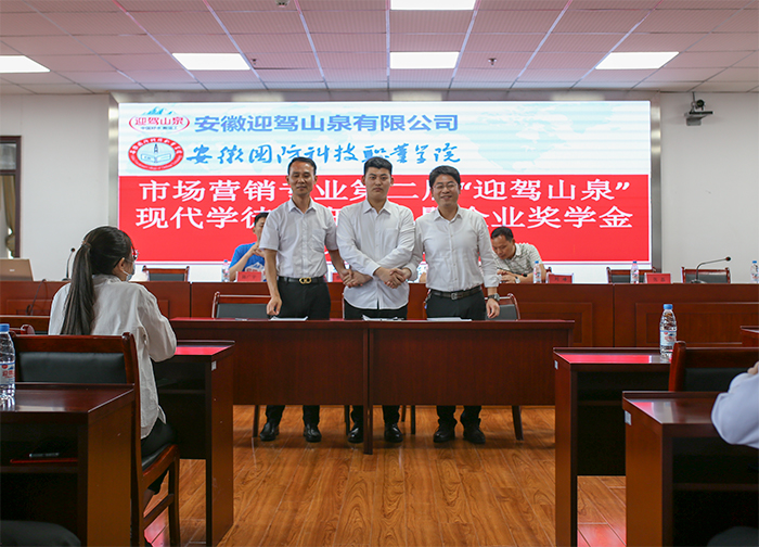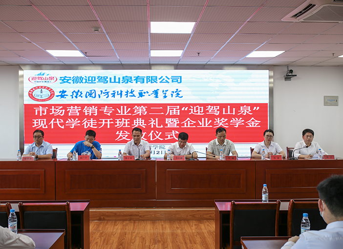 鲁正贤向在座嘉宾及学徒们介绍了安徽迎驾山泉股份有限公司的基本情况。他希望同学们抓住安徽迎驾山泉股份有限公司快速发展的机遇,在校努力学习专业知识,跟岗实习期间将所学知识融入到实践中去,要有吃苦耐劳的精神和不畏困难的决心。相信在学校、公司、学生三方的共同努力下,“迎驾山泉”学徒班的同学们定能成为公司的销售精英。
