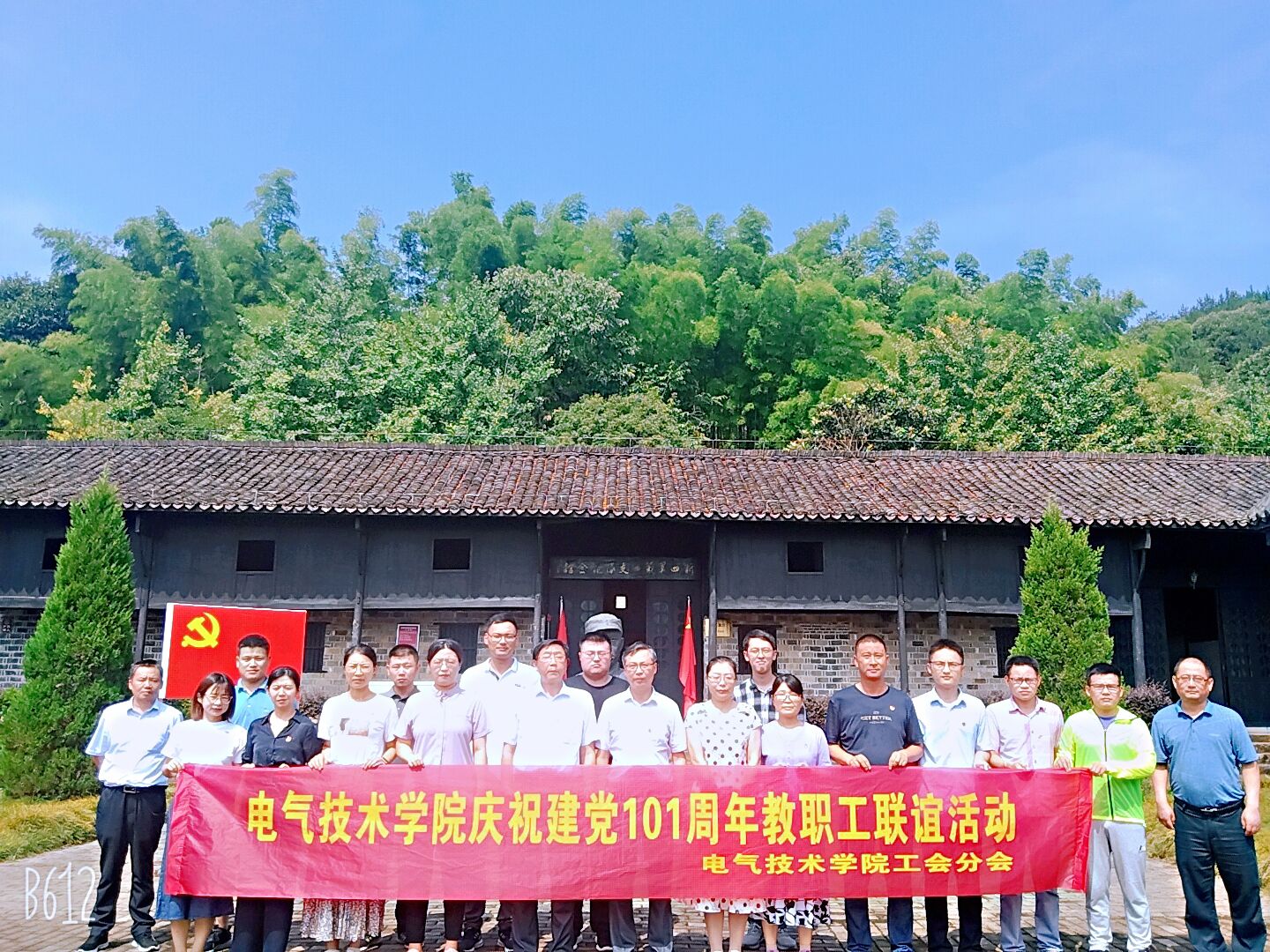 本网讯(电气技术学院 樊新丽)为庆祝建党101周年,喜迎党的二十大,进一步提升党组织的凝聚力和战斗力,7月7日,电气技术学院组织党总支党员及工会会员来到了舒城县新四军四支队旧址,展开了抚今追昔,缅怀先烈的革命之旅。