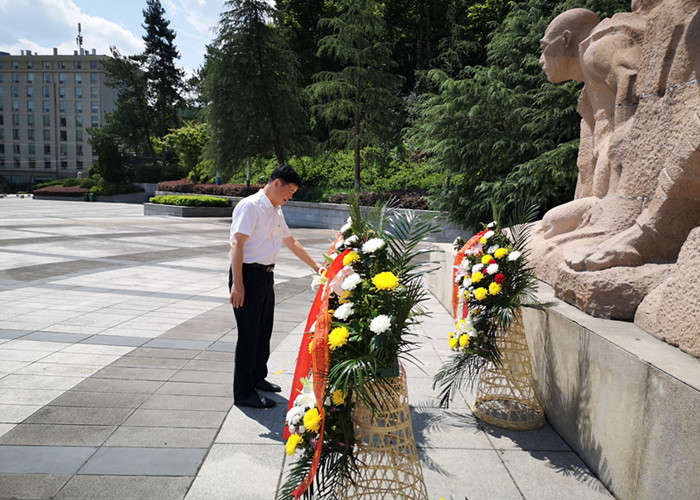 随后,全体党员来到霍山县红源广场,在大别山革命英雄群雕下敬献花篮,默哀。在党员付贤政的领誓下,面向鲜红的党旗,庄严地举起右拳,重温入党誓词,铮铮誓言,彰显了各位党员同志的热血与忠诚。