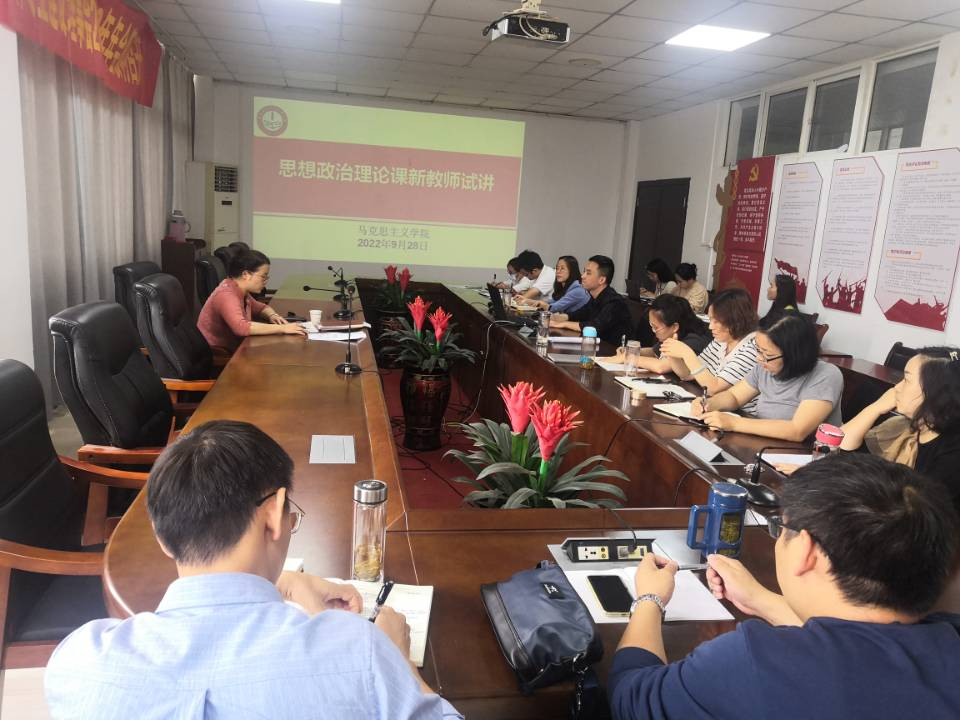 本网讯(马克思主义学院 武晓璐)为了解新进教师课堂教学水平和教学能力,进一步提高教师综合素质,加强教师队伍建设,营造思政课教师之间相互学习和相互交流的良好氛围。依据学院计划,9月28日上午,马克思主义学院三位新进教师在知行楼403会议室进行了试讲教学活动,展示各自教学技能。活动由教研室主任王成名主持,校党委委员、宣传部部长、马克思主义学院院长陈思及全体思政课教师参加。