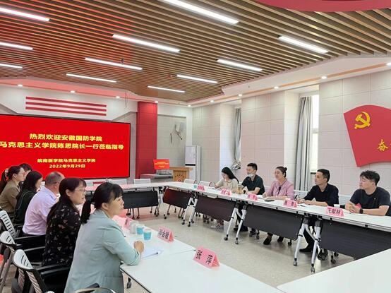 皖南医学院马克思主义学院副院长陶庭马代表学院对陈思院长一行表示热烈欢迎,介绍了其马院发展概况,并就智慧思政项目和虚拟仿真中心建设等方面进行了详细的说明。陈思向皖南医学院马克思主义学院的热情接待表示感谢,希望通过调研活动加强双方交流合作,学习皖南医学院马克思主义学院在智慧思政项目及VR虚拟仿真教学方面的先进经验和优秀成果。