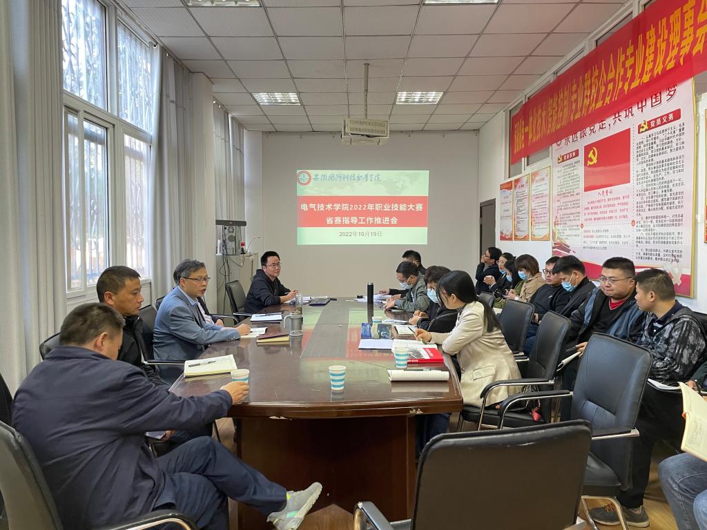 本网讯(电气技术学院 程坤)10月19日下午,电气技术学院在学院会议室召开2022年安徽省职业技能大赛指导工作推进会,会议由电气技术学院院长李翔主持,参与2022年技能大赛省赛指导工作的全体教师参加了本次会议。
