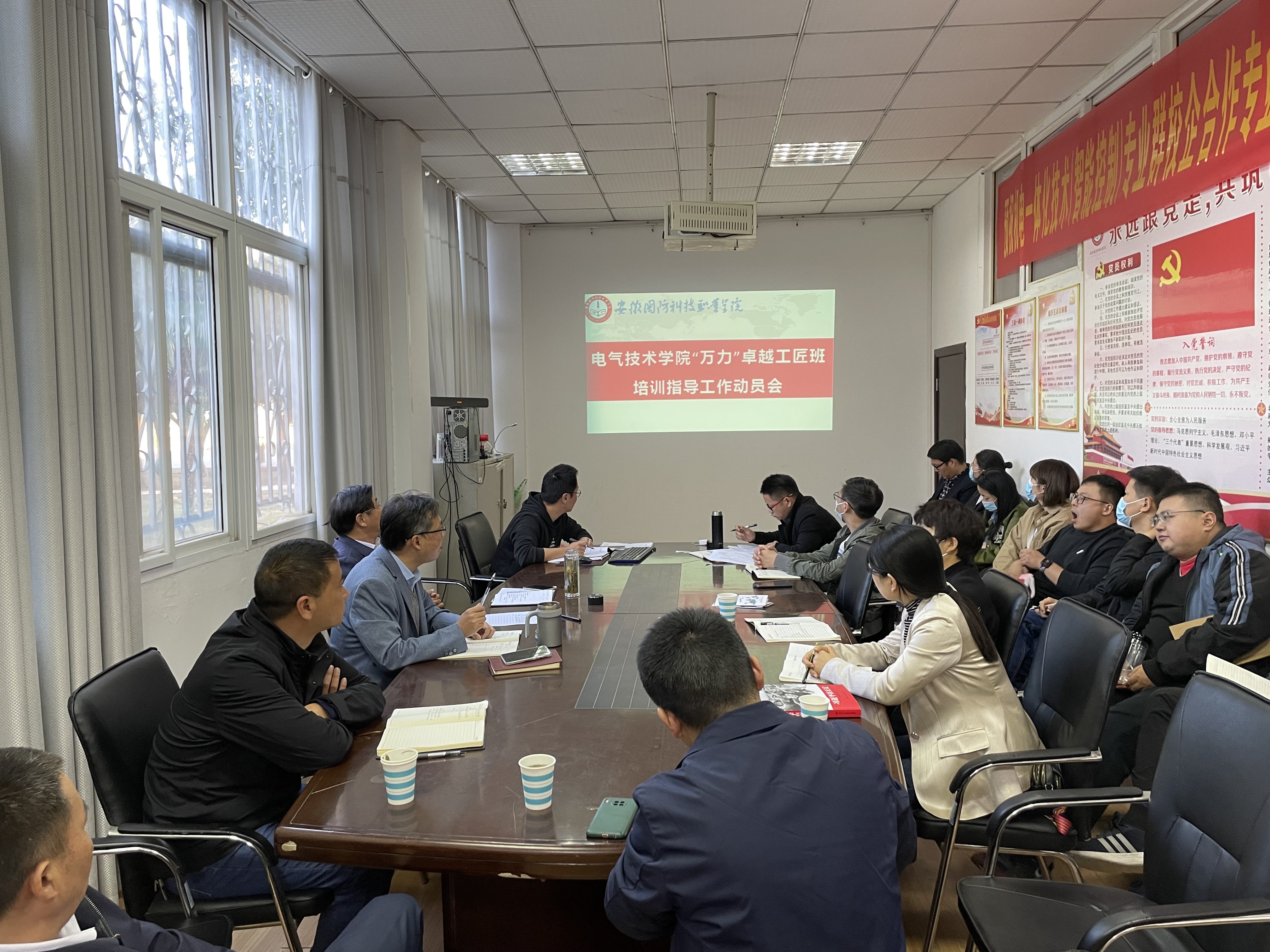 本网讯(电气技术学院 程坤)10月19日下午,电气技术学院在学院会议室召开“万力”卓越工匠班培训指导工作动员会。会议由电气技术学院院长李翔主持,“万力”卓越工匠班全体指导教师参加了本次会议。