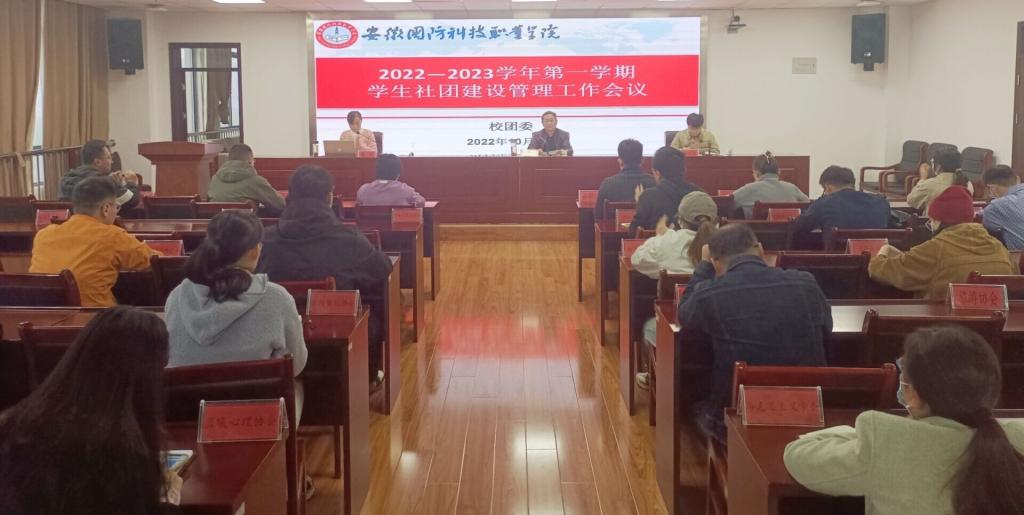 本网讯(团委 罗丞筠)为进一步加强学生社团建设管理,推进社团活动及事务的顺利开展,充分发挥学生社团在校园文化建设中的积极作用,10月26日下午,校团委在秉心楼12楼会议室组织召开了2022-2023学年第一学期学生社团建设管理工作会议。党委学生工作部部长、学生处处长孙武,校团委副书记张凤出席会议,二级学院团总支书记、各学生社团指导教师和社团负责人参加会议,会议由校素质拓展中心主任罗丞筠主持。