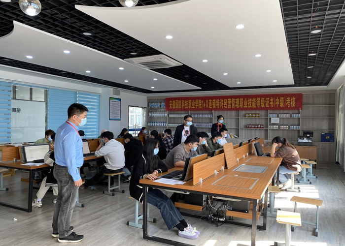 学院领导高度重视“1+X”职业技能等级考证,为确保考试正常、有序进行,对考场系统安装调试、考试报名、考试组织等相关工作进行了精心安排。市场营销专业教师团队精心组织考试工作,学院院长杨力、副院长杨学分到考场进行现场巡查,确保考试顺利进行。本次考评由“1+X”连锁特许经营管理职业技能等级评价组织——深圳市逸马科技有限公司对55名考生进行考核。