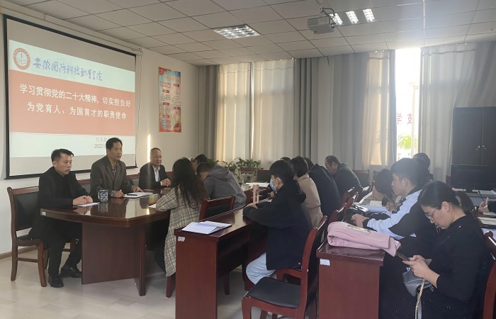 孙良平传达了安徽省教育系统学习贯彻党的二十大精神视频会议的主要工作部署,即全面准确领会学习贯彻党的二十大精神的重大意义,全面形成学习贯彻党的二十大精神的新高潮,全面落实为党育人、为国育才的使命担当,从严从实、落地生根、开花结果。