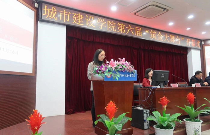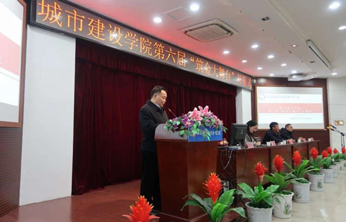 随后,城市建设学院院长王红林为此次活动致开幕词。王红林指出,筑金大舞台是为全面促进学生专业学习和综合能力的提升,推动学院文化建设,为广大师生搭建平台的文化品牌,城市建设学院师生们可以在筑金大舞台上尽情展示、彰显才华、施展技能,为学院增光添彩。