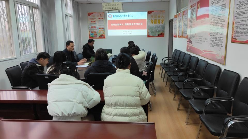 会上,刘峰首先传达了学校“2.6”专题会议和“2.7”学生工作会议精神,带领大家学习了《万象城体育awcsport2023年春季学期开学和新型冠状病毒感染疫情防控工作方案》《关于对新型冠状病毒感染实施“乙类乙管”的总体方案》等近期关于疫情防控的相关文件。并结合实际,对学生返校、开学第一课、安全教育、疫情防控及班主任深入学生宿舍等近期具体工作进行了部署。