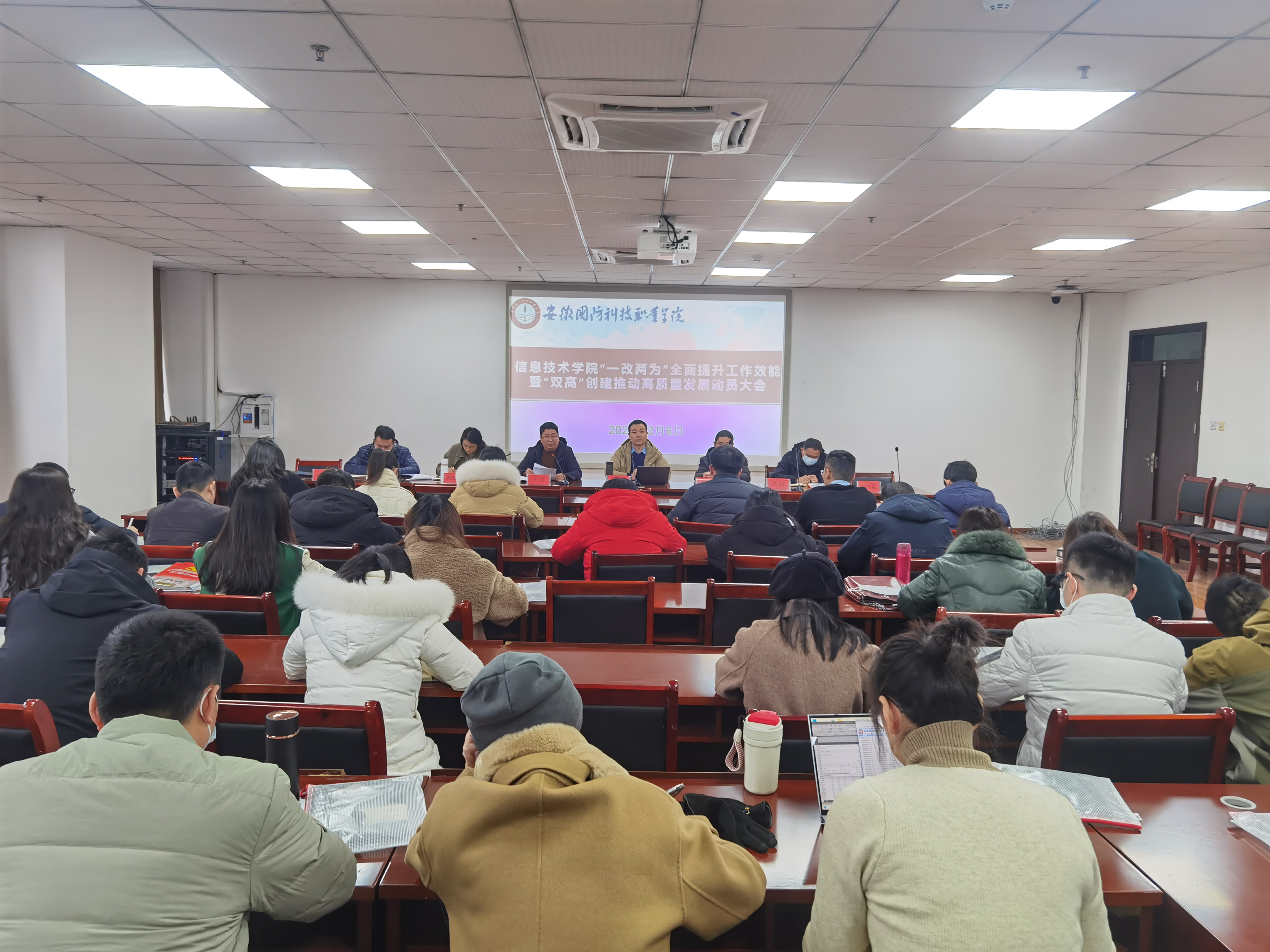 本网讯(信息技术学院 李剑峰)为全面提升工作效能,落实学校“一改两为”新举措,进一步推动学院高质量发展,2月6日下午,信息技术学院在秉心楼902会议室召开期初职工大会,会议由校党委委员、信息技术学院院长沙有闯主持,全体教职员工参加了会议。