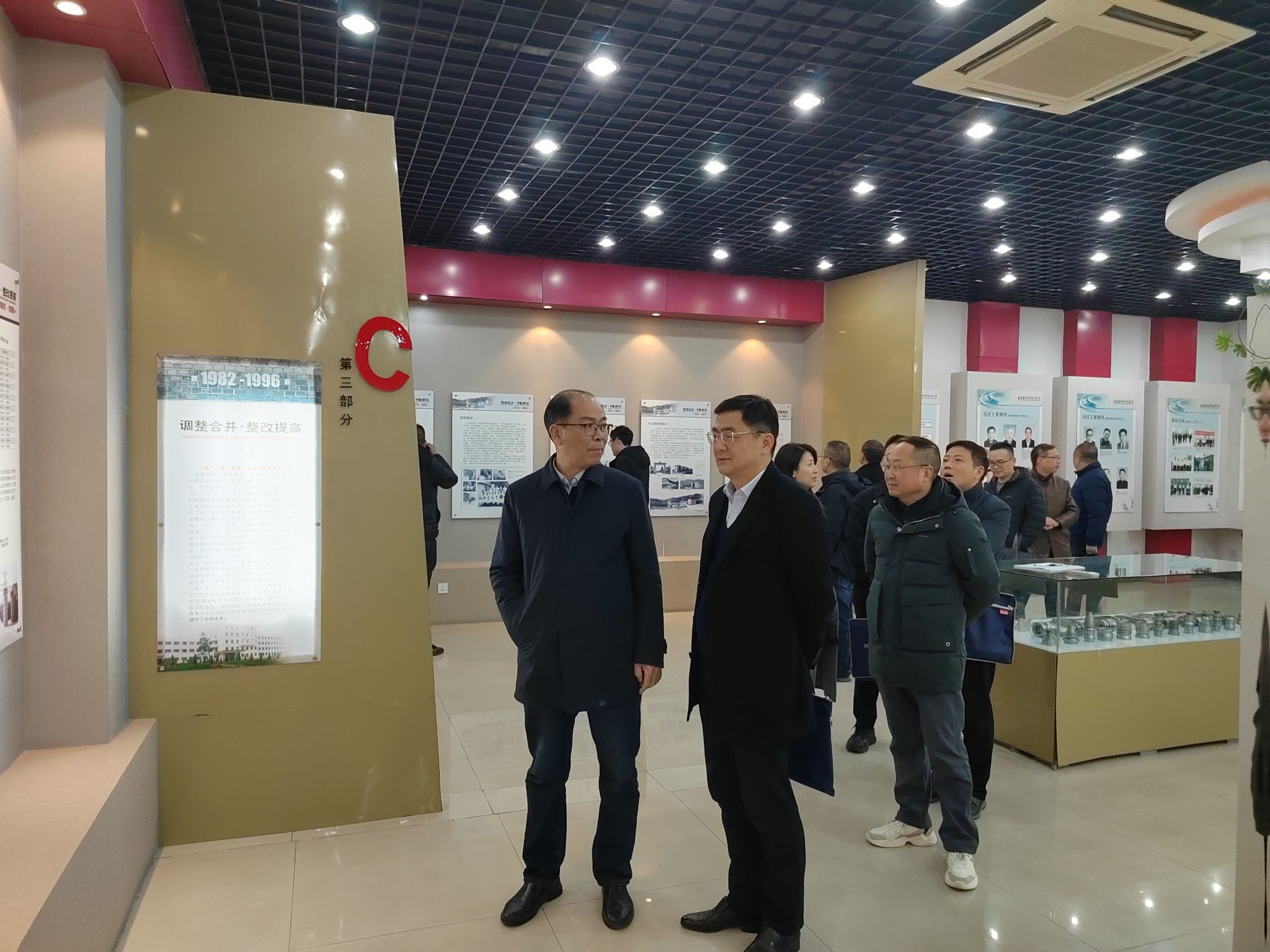 校史馆记载着学校的办学历程和发展成果,校长李麟书向各位来宾介绍了学校办学的历史沿革及跨越发展阶段。通过一幅幅详实的图片,展示了学校办学四十余年来的艰辛创业之路和安徽军工“黄埔军校”至尊美誉的由来。