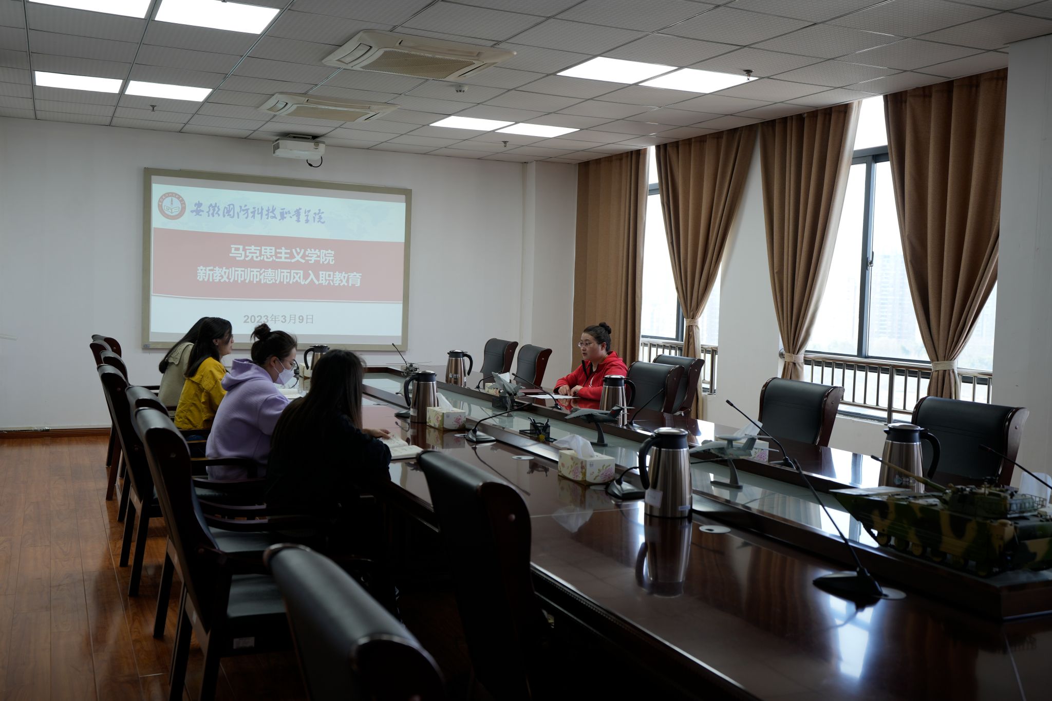 为更好促进新教师成长,系列活动中还特别设置了新进教师入职教育活动,3月9日,陈思院长主持新进教师师德师风入职教育培训会。带领四位新入职教师围绕积极践行高尚师德,争做“四有好老师”进行专题学习,并对新教师提出殷切希望。带领新进教师参观校史馆,回顾万象城官网的发展历程,增强对万象城官网的归属感、荣誉感,引导和促进新进教师坚定理想信念、涵养高尚师德情操,勇担教书育人光荣使命。