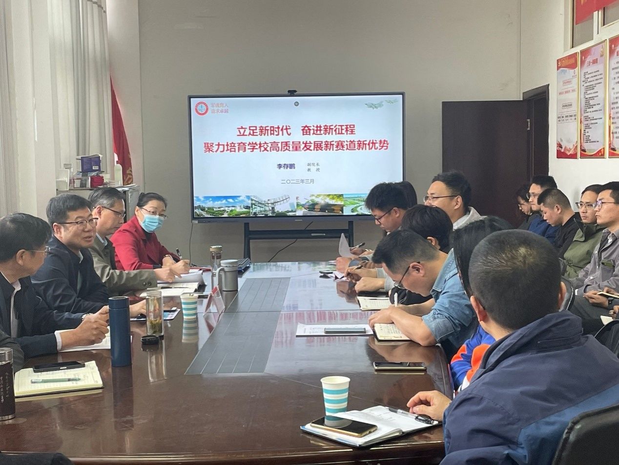 本网讯(电气技术学院 马骙)为进一步学习宣传贯彻落实党的二十大精神,积极推进职业教育高质量发展,3月15日下午,校党委委员、副校长李存鹏赴电气技术学院给全体教职工作“立足新时代奋进新征程,聚力培育学校高质量发展新赛道新优势”的专题报告,会议由学院院长李翔主持,电气技术学院全院职工参加了本次专题报告会。
